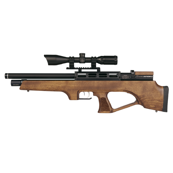 | RIFLES PCP Sistema de aire precomprimido de características inmejorables para la práctica deportiva de la caza y el tiro. -Volumen de aire 300cc (200 bar/3000 psi). -Palanca de carga adelantada estilo Biathlon -Cañón de alta precisión martillado en frío. -Manómetro incorporado. -Culata de madera de haya. -Rail Picatinny -Cargador multitiro |