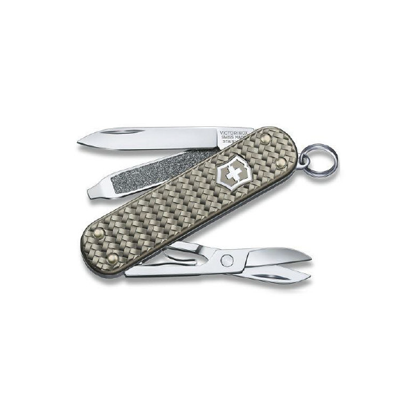 Artículo: 22913 Modelo: 0.6221.4031G Usos: 5 Altura: 6 mm Longitud: 58 mm Cachas: Alox diseño tramado Presentación en estuche |