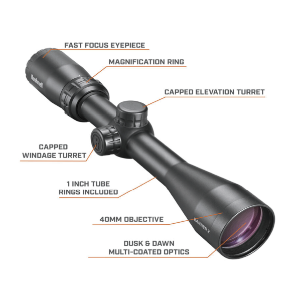 | Ópticas recubiertas mediante un sistema de capas múltiples denominado Dusk & Dawn Brightness (DDB), diseñadas para cacerías al amanecer y al atardecer. Se ha mejorado el rendimiento óptico con respecto al Banner original aumentando el contraste y la claridad. Construída en tubo monopieza de aluminio espacial, con sellado impermeable y clasificación IPX7 prueba de agua. |