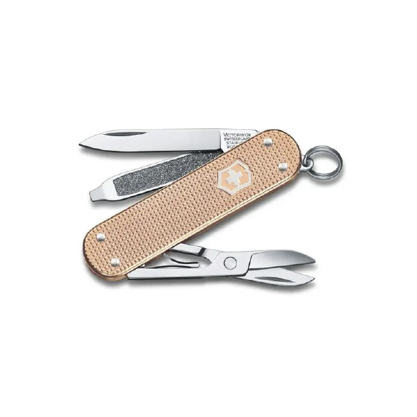 Artículo: 22025 Modelo: 0.6221.202G Usos: 5 Altura: 6 mm. Longitud: 58 mm. Cachas: AloxPresentación en estuche.