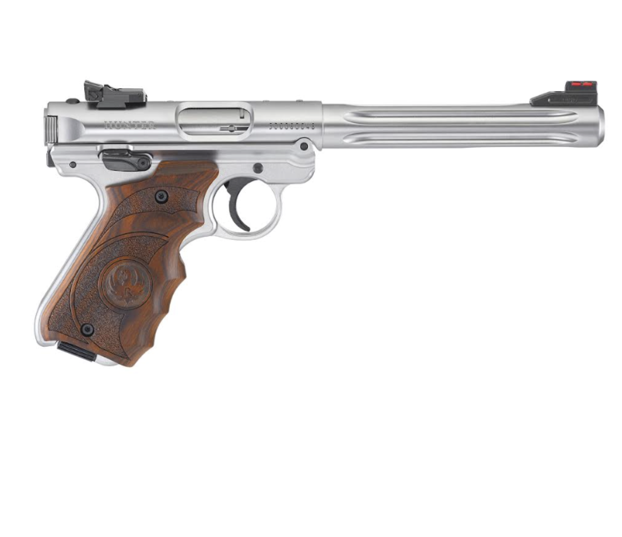 Model 40160 Calibre .22 LR Capacidad 10+1 Corredera Stainless Steel/Satin Stainless Grip Frame Target Laminate Aparato de puntería Alza regulable y guión con fibra óptica Cañón 6.88″ Fluted Bull