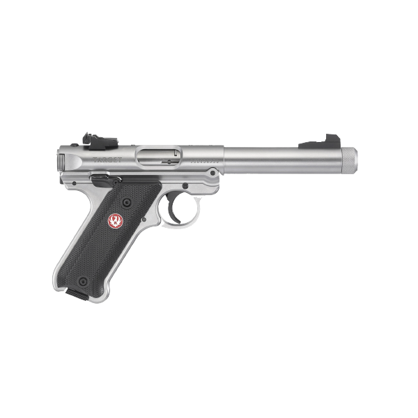 Articulo: 15262 Modelo:40103 Calibre: .22LR Capacidad: 10 + 1 Material/Term. Stainless Steel/Satin Stainless Grip Frame Checkered Synthetic Aparato de puntería Alza regulable y guión Cañón 5,50″ Bull Incluye: 2 cargadores |