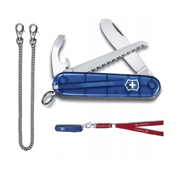 | Creada específicamente para niños. Fabricada con nueve funciones, para que puedan hacer lo que necesitan hacer, y sin la punta de la hoja para mantenerlos seguros. . Artículo: 22022 Modelo: 0.2373.T2 Color: Azul Translucido |