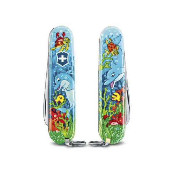 | My First Victorinox Children Set Animal Edition. Los niños son curiosos por naturaleza. Nuestro divertido juego los ayudará a explorar y a involucrarse con el mundo que los rodea,en tres diseños increíbles de animales, cada juego viene con una práctica cinta para el cuello y un libro para colorear lleno de aventuras en el que también se enseña a los niños a usar las cortaplumas de manera segura (con la supervisión de un adulto). |