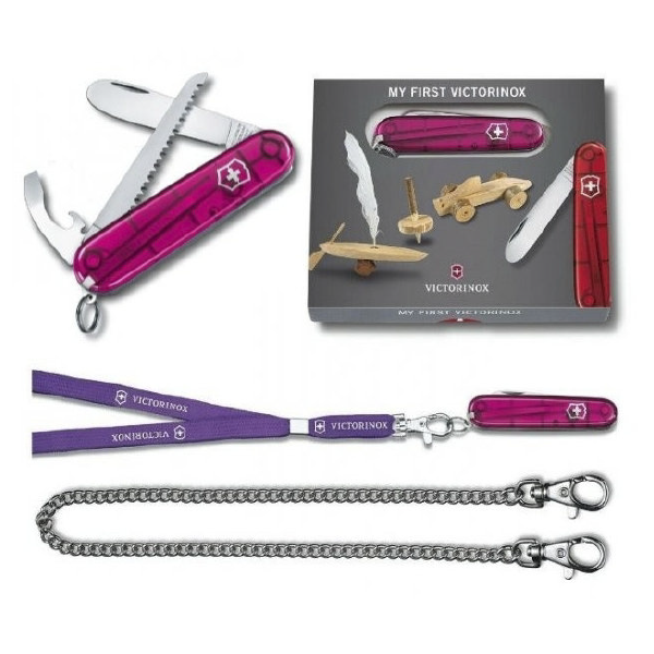 | Creada específicamente para niños. Fabricada con nueve funciones, para que puedan hacer lo que necesitan hacer, y sin la punta de la hoja para mantenerlos seguros. . Artículo: 22023 Modelo: 0.2373.T5 Color: Rosa Translucido |