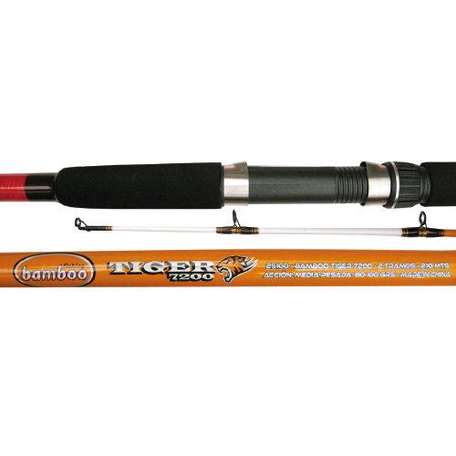Articulo: 25100 Modelo: TIGUER702 Medida: 2,10m Tramos: 2 Material: Fibra de Vidrio Mango: Eva Resistencia: 80-100 g