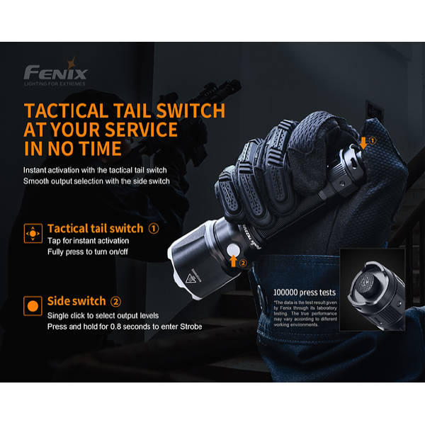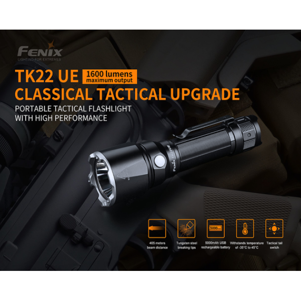 | -Low-voltage warning alerts when battery replacement needed. -LUMINUS SST40 LED (cool white) with a lifespan of 50,000 hours. -Instant power activation with momentary tactical tail switch. -Reverse polarity protection, to protect from improper battery insertion. -Made of A6061-T6 aluminum. -Premium type HAIII hard-anodized anti-abrasive finish |