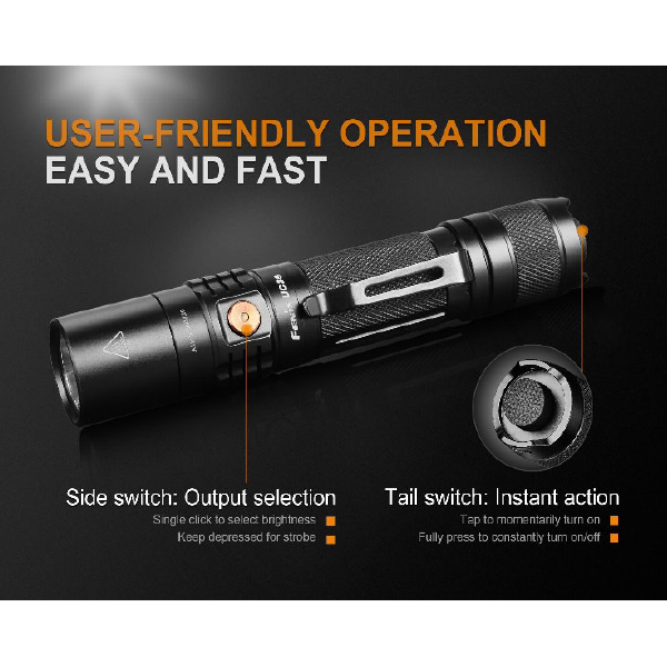 | -Boot-up battery level indication and low-voltage warning function -Cree XP-L HI V3 LED, with lifespan of 50,000 hours -Tactical tail switch features instant activation -Reverse polarity protection, to protect from improper battery insertion. -Made of durable high-strength and oxidation-resistance aluminum -Premium type HAIII hard-anodized anti-abrasive finish. |