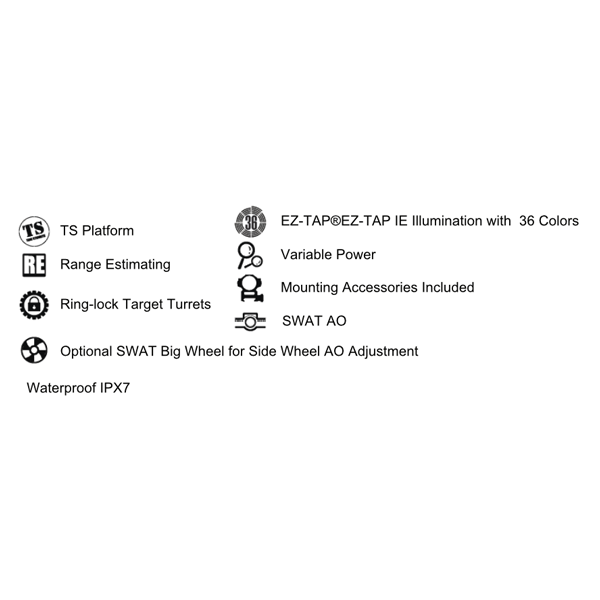 Compact Scope, AO, 36-colors Mil-dot, con anillas medium Picatinny. Tapas abatibles.