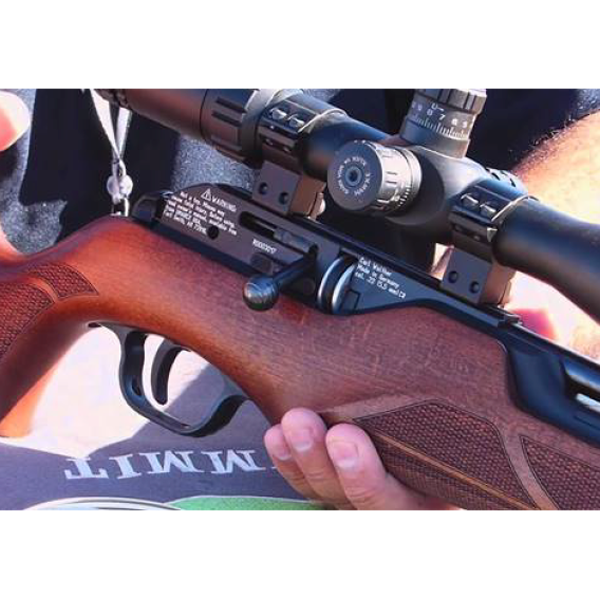 | -Estilo inglés, fabricado en Alemania. -Cañón Lothar Walther -Cilindro de aire precomprimido (PCP) integrado con manómetro. -Culata ergonómica Minelli de madera con segrinados. -Cantonera Shock Absorber. -Cargador metálico rotativo. -Seguro manual NO INCLUYE mira telescopica ni montajes |
