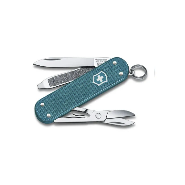 Artículo: 22030 Modelo: 0.6221.242G Usos: 5 Altura: 6 mm. Longitud: 58 mm. Cachas: AloxPresentación en estuche.